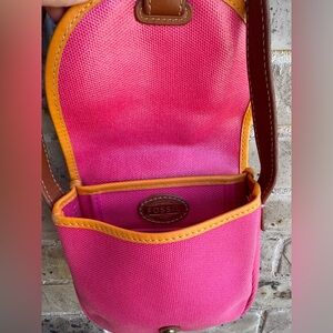 FOSSIL Austin Small Flap Pink Canvas Crossbody Bag