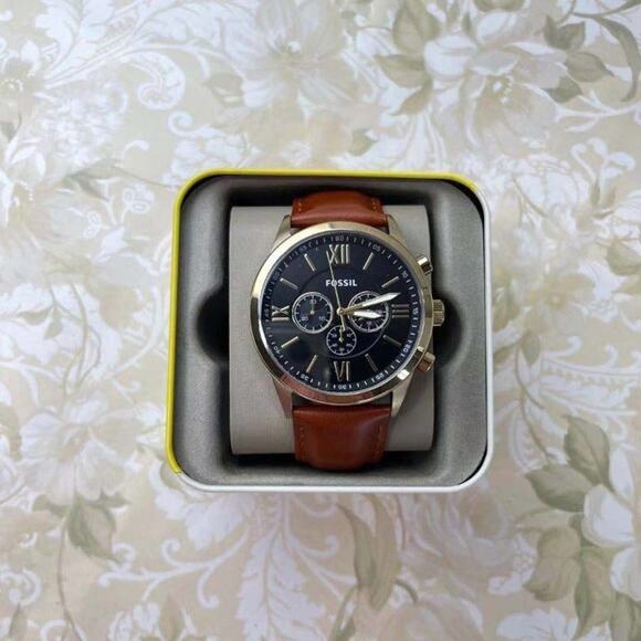 FOSSIL BQ2261 FLYNN GOLD BLACK BROWN LEATHER CHRONOGRAPH MEN WATCH: