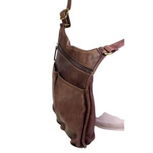 FOSSIL BROWN GENUINE LEATHER MEDIUM ORGANIZER X-BODY SHOULDER BAG HANDBAG PURSE