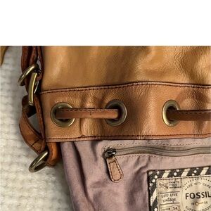 Shoulder BAG Tan, light rubs on vintage bucket bag normal wear, small scuff on side bag show in picture, liner clean , adjustable strap, Fossil bucket bag for every day use, Good Condition💚🩷💚