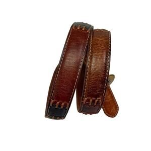 FOSSIL Belt Women's Medium Two Tone Brown Stitch Leather Metal Buckle