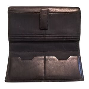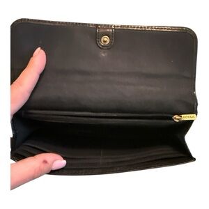 Elegant Fossil clutch in rich black leather. Ideal for stylish outings.