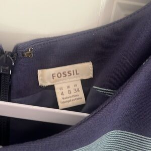 FOSSIL Blue Striped Sleeveless Pleated Zipper Up Dress Size 4