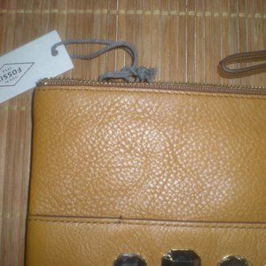 FOSSIL Brand Brown Leather Case Holder Zip Pouch NWT