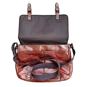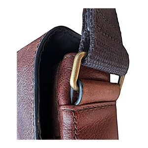 FOSSIL Brown Leather Briefcase Bag Shoulder Crossbody 15”x11”x3.5” Office