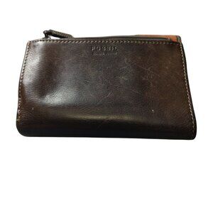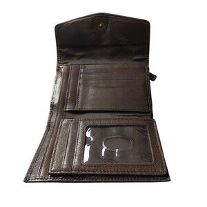 FOSSIL Brown Striped Chevron Embossed Tri-Fold Leather Wallet Snap Flap Vintage