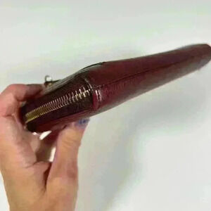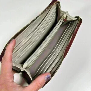 FOSSIL Burgundy Leather Zip Around Wallet Multi Compartment Classic Everyday