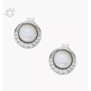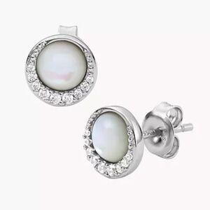 FOSSIL CRESCENT WHITE MOTHER-OF-PEARL STERLING SILVER STUD EARRINGS