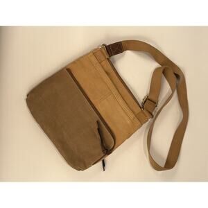 FOSSIL Crossbody Organizer Beige Canvas Handbag Shoulder Boho Hippie Vintage Bag