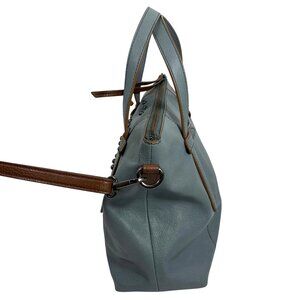 FOSSIL Dusty Blue & Brown Vegan Leather Studded Shoulder Crossbody Bag Tote