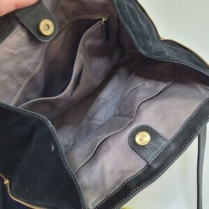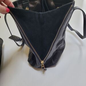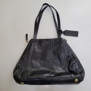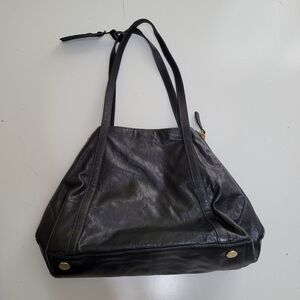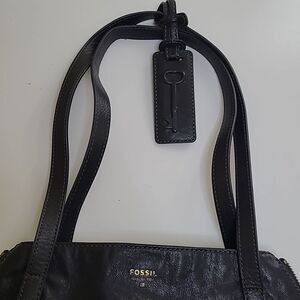 FOSSIL EXPANDABLE ZIP LEATHER BLACK TRIANGLE PURSE SHOULDER TRAVEL BAG