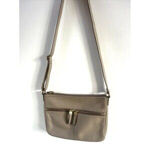 FOSSIL Elise Pebbled Leather Crossbody Shoulder Bag Purse Gray-Taupe Color