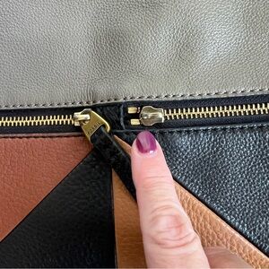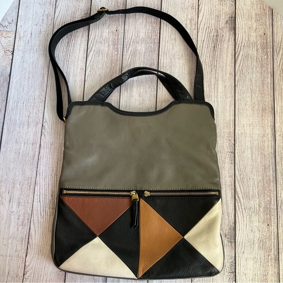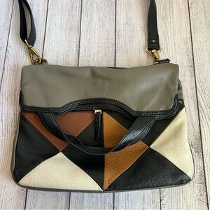 FOSSIL Erin Patchwork Leather Crossbody Bag. Please see all photos for wear. There is a strap missing on one of the zippers. Gently used condition.