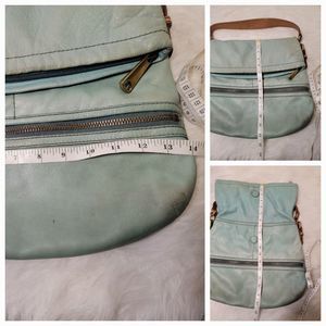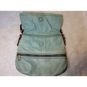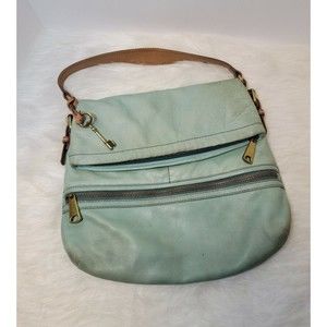 FOSSIL Explorer Flap Foldover Hobo Mint Green Teal Leather Slouch Shoulder Bag