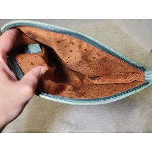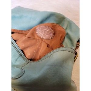 FOSSIL Explorer Flap Foldover Hobo Mint Green Teal Leather Slouch Shoulder Bag. Fun light teal mint green coloring. Lots of pockets and compartments. Fun foldover style. Has some wear to exterior leather: pen marks on inside Flap area, one small pen mark front bottom, dirt wear bottom corners, lining excellent. Boho Bohemian Festival bag.