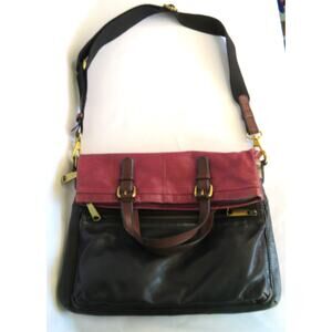 FOSSIL Explorer Leather Tote Crossbody Shoulder Bag Black/Mauve