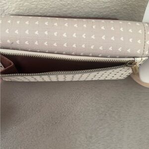 Stylish Fossil wallet with a heart pattern. Features a sleek design. Perfect for everyday use.