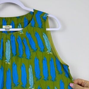 FOSSIL Green Blue Sleeveless Lightweight Feather Shift Lined Dress / Size Large