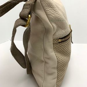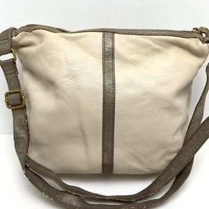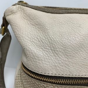 FOSSIL Ivory Cream Genuine Pebble Leather Crossbody Shoulder Bag Metallic Tote