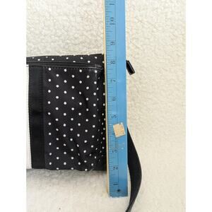 The NWT Fossil Jenna Crossbody in Black White Dot is a stylish and versatile handbag for women. Made of faux leather with a polka dot pattern and a zip closure, this medium-sized bag features a white handle/strap and hardware color. The exterior color is a combination of black and white, while the lining color is white. Perfect for everyday use, this crossbody bag by Fossil also includes pockets for added functionality. The model number for this trendy and practical accessory is ZB1311982.