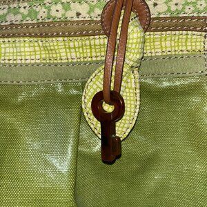 FOSSIL KEY PER TOTE Apple Green Coated Canvas Shoulder Bag Purse Handbag - NEW