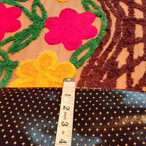 A coated multicolored canvas tote by Fossil Key-per with brown leather double handles. Zipper closure with 2 outside pockets, one has turn-key closure. Inside has key-per logo with one zipper pocket and 2 interior slip pockets. Leather Handles are I n great shape. There is some discoloration on front of bag (see photos). Silver hardware, brown cotton dot lining.