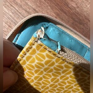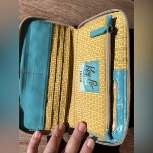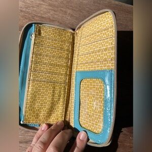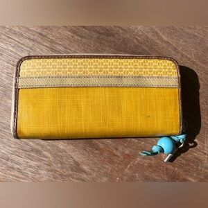 FOSSIL KEYPER KEY PER Fabric Faux Leather Zip Around Wallet Clutch Mustard Yello