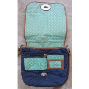FOSSIL Key-Per Quilted Fabric & Leather Crossbody Satchel Messenger Bag