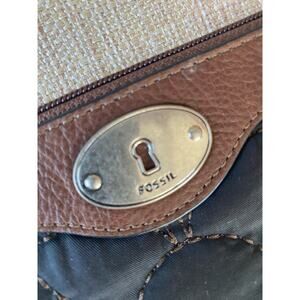 FOSSIL KeyPer Tan Wristlet Wallet Purse Coated Canvas with Leather Strap