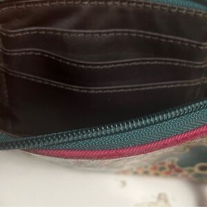 FOSSIL Key-Per Wristlet Coated Canvas Floral Multicolor Brown Leather Trim