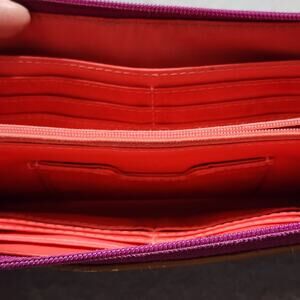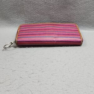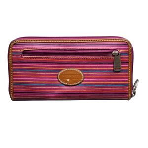 FOSSIL Keyper Clutch Wallet Pink-Purple Stripe 3 Pocket Zip Around Closure Disc