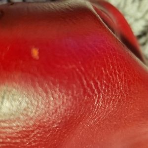 Red leather handbag clean inside and out please see all pics a couple of marks thank you. This bag is in excellent used condition.