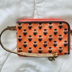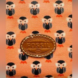 FOSSIL LEATHER OWL PRINT WRISTLIST BAG ZIPPER WALLET WOMENS
