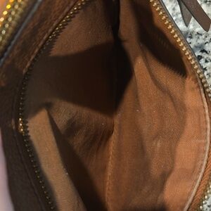 Pre-owned. Good condition. Some wear to the hardwear. Includes charm. Adjustable shoulder strap. 1 outer zippered pocket. 1 top zippered pocket with 3 inner pockets. 2 open, 1 zippered. Edges look good.