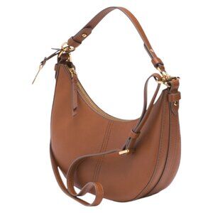grained finish, fully lined, brand logo detail, gold tone hardware, detachable adjustable shoulder strap, top carry handle