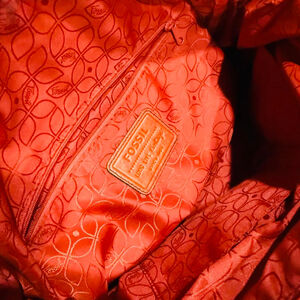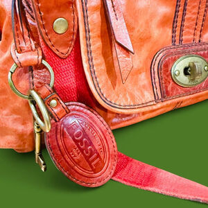 Orange brown Fossil hobo bag with adjustable strap, multiple pockets, and keychain #fairycore
