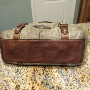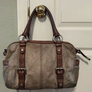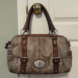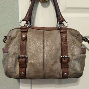 FOSSIL MADDOX GRAY GLITTER PATTERN LEATHER SATCHEL SHOULDER CROSSBODY HANDBAG - bag has some marks, see pics
