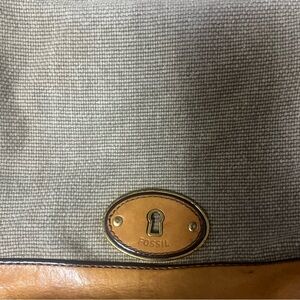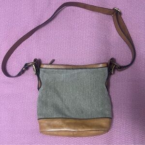 FOSSIL MADDOX Leather Khaki Canvas Bucket Crossbody Shoulder Bag Traveler