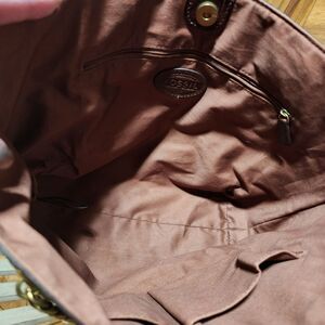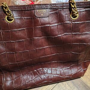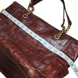 FOSSIL MIMI SHOPPER DARK BROWN CROCODILE LEATHER TOTE,GOLD CHAIN SHOULDER BAG