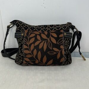 FOSSIL MULTICOLOR TAPESTRY GENUINE LEATHER STRAP XBODY HOBO SHOULDER BAG HANDBAG