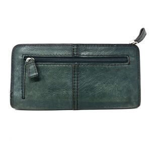FOSSIL Marlow Pebbled Leather Zip Around Wallet Green w/Silver Key Hole Logo