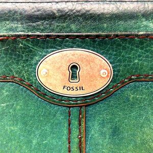 FOSSIL Marlow Pebbled Leather Wallet Clutch in Deep Sea Green. Features Zip Around closure, Silver Key Hole Logo, Exterior zipper change purse, interior 12 credit card slots, Leather ID slot and Key ring, 2 bill slots, Room to pop in your checkbook.