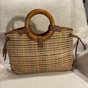 FOSSIL Multicolor Woven Tote with Wooden Handles