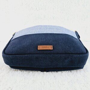 FOSSIL Navy Blue Ivory Striped Linen Crossbody Leather Accents Adjustable Strap