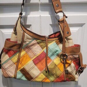 FOSSIL PATCHWORK LEATHER HANDBAG~RARE