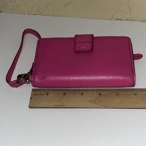 *FOSSIL PINK LEATHER BUTTON CLOSURE WRISTLET CLUTCH WALLET PHONE PURSE *