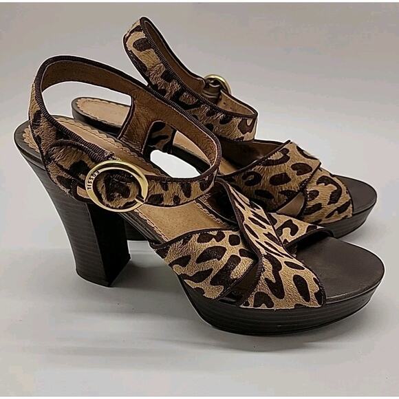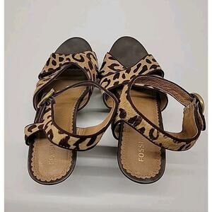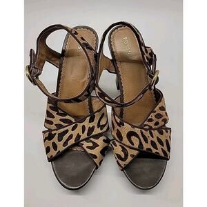 FOSSIL Platform Women's Size 9 Cheetah Leather Calf Hair Sexy Strappy Heels