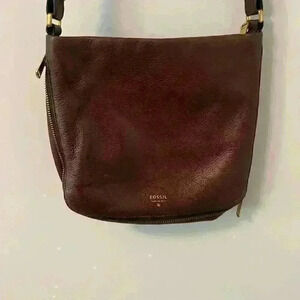 FOSSIL "Preston" Brown Pebbled Leather Expandable Crossbody