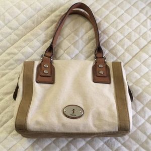 FOSSIL Purse. Good Used Condition. Very light marks here and there from use. Some color variations in the leather handles. Very lightly used. Perfect for summer.