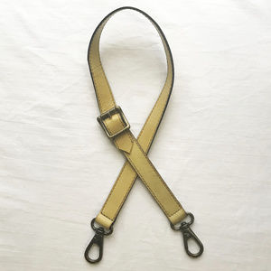 FOSSIL Tan, British Tan, Yellow Replacement Strap Purse Pocketbook Parts. Swivel Clips & Hardware are Antiqued Brass Bronze color. Buckle piece is 9.25" from end of buckle to end of clip. The other piece is 25" from end to end. This long piece is not the full strap, it has been cut short, the shorter length is the standard strap piece. The leather is a light enough color that the pieces could easily be dyed to match a medium or darker purse color. Sold as replacement parts, "as is".